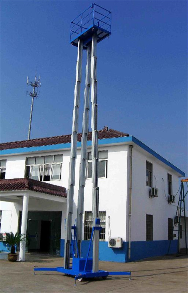 單柱鋁合金升降機:該系列產品為室內型,廣泛適用于星級酒店,大型超市等各行業大廳、廠房內的高空作業, 具有升降平衡,操作方便,能進入一般門廳,可隨意進出電梯且耗電少、工作時不傷 地面,可用于貼墻工作及探出作業,工作無死角。
