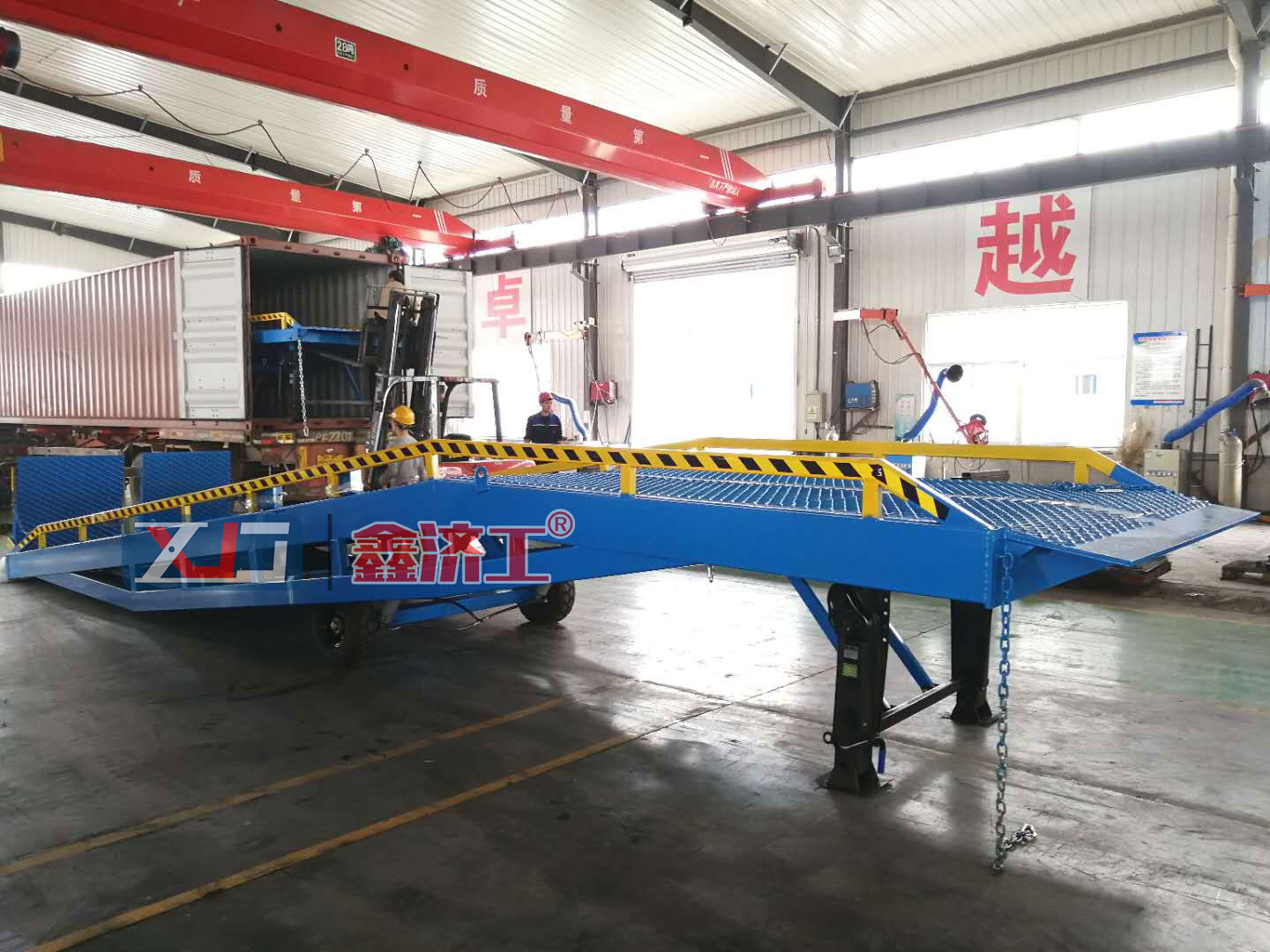 液壓式可移動登車橋是一種方便、快捷、安全、科學、省時、省力、省人工的叉車上下裝卸操作平臺,適用碼頭、集裝箱裝卸,是貨物裝卸的必需品,濟工機械、走遍世界!